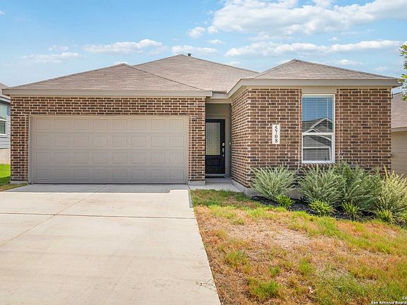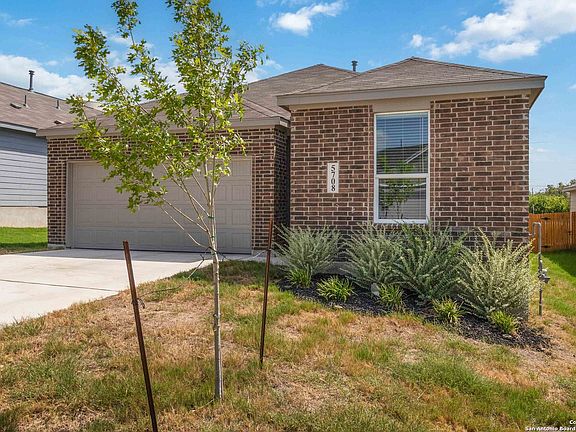 Move in ready, single story home provides ample space to live and grow that is move in ready on a greenbelt lot! An open-concept floorplan combines the kitchen, dining area and family room, with convenient access to a covered patio for seamless entertaining and relaxation. Kitchen has quartz counter tops, stainless appliances, gas cooking, and modern cabinets. Two secondary bedrooms can be found off the foyer, and the luxe owner's suite is tucked away into a private corner at the back of the home, offering direct access to an en-suite bathroom, oversized shower, double vanity, and roomy walk-in closet. Water softener, refrigerator and garage door opener included. Exterior features sprinkler system, screen door leading to oversized covered porch for the neighborhood!