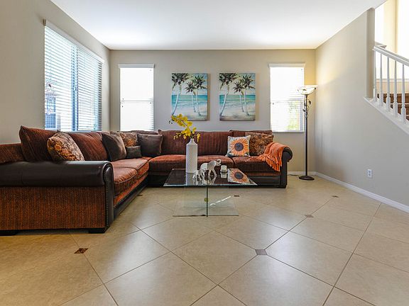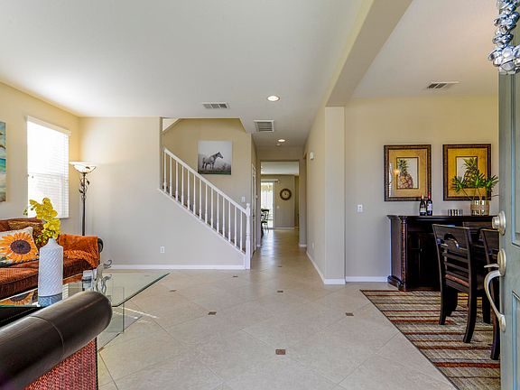 This spacious 4 bedroom and 2.5 bath home with 2,678 square feet of living space is located in a family friendly neighborhood on a cul-de-sac. The home is stunning with high ceilings, tile flooring throughout the first floor, great natural lighting, convenient half bath and laundry room downstairs with direct access to the tandem 3-car garage. The entrance leads you to the formal living and dining room. In the kitchen, you find stylish granite counter tops, stainless steel built in appliances, a large center island with breakfast bar, recessed lighting and a pantry. The family room with a ceiling fan and fireplace is spacious and great for all your special family gatherings. Upstairs you have the master and 3 bedrooms with carpet through all. The master bath has dual vanities, ceramic tile