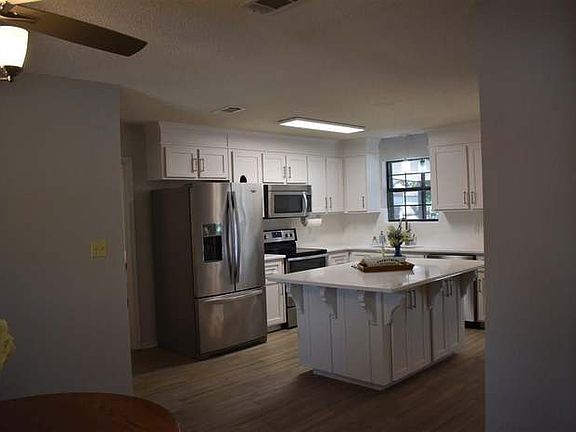Features include newly renovated master bathroom, wood burning fire place, attached two car garage, Florida room, fenced back yard and on cul-de-sac street. Intermediate, middle and high schools within 2 miles. Publix is 0.7 miles away, right around the corner.