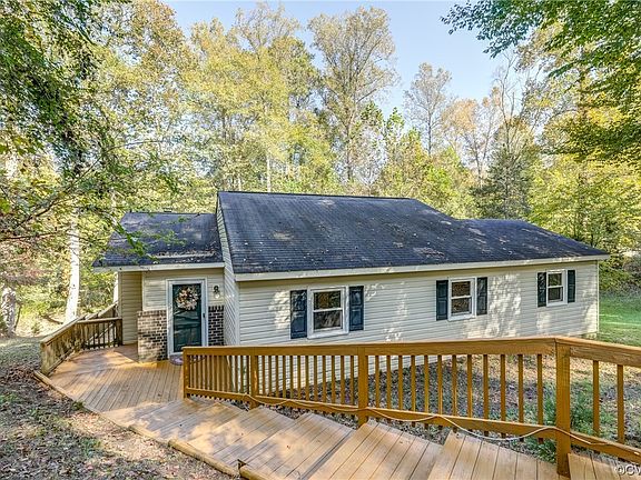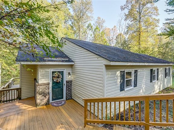 Escape to Your Own Lake Retreat in this wooded close-knit Woodhaven Shores community that wraps around a 136sq acres Kent Lake. The comfort of single level living, combined with scenic views of the lake, will ensure year-round serenity and enjoyment. The house will welcome you with beautiful wood beam ceilings throughout, new luxury laminate flooring, fresh paint, new GE SS stove & dishwasher, new SS range hood, new SS kitchen sink & faucet, new kitchen counters & ceramic tile backsplash. Complementing these features are the 2023 HVAC system, 2019 Washer, as well as low-maintenance vinyl siding, replacement vinyl windows and a spacious 44'x10' rear deck. The community offers an array of amenities, including multiple fishing piers, boat ramps, a beach & picnic area w/pavilion, a playground, baseball & softball fields—providing endless opportunities for outdoor recreation. Conveniently located just 20+ mins from RVA and 30 mins from Williamsburg, with easy access to 64 & 295, this property offers flexibility in its use. Whether you're seeking a lake house retreat, a primary residence, a long-term rental investment, or an Airbnb opportunity, the choice is yours!