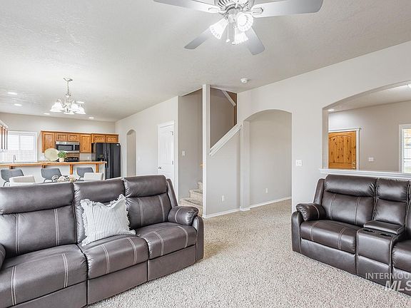A SW Boise Home Abode. Built by Aspen Builders. A floorplan with 4 bedrooms and room to create living space on Main Floor. Cozy up near this fireplace. The second living room allows for a spacious office or main level flex space. Large Breakfast bar and a U- shape kitchen with window above sink and oversized shelving in pantry. Private backyard without neighbors. Ceiling fans in Master Suite and Bedroom 3.