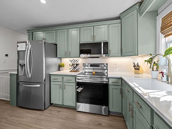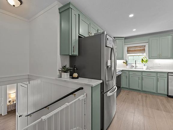 Inside, the vaulted great room creates an open, welcoming feel and flows seamlessly into the renovated kitchen, featuring stainless steel appliances (2023) that convey, a large pantry, and modern finishes throughout. Luxury vinyl plank flooring runs throughout the entire home (2023), adding both style and durability.