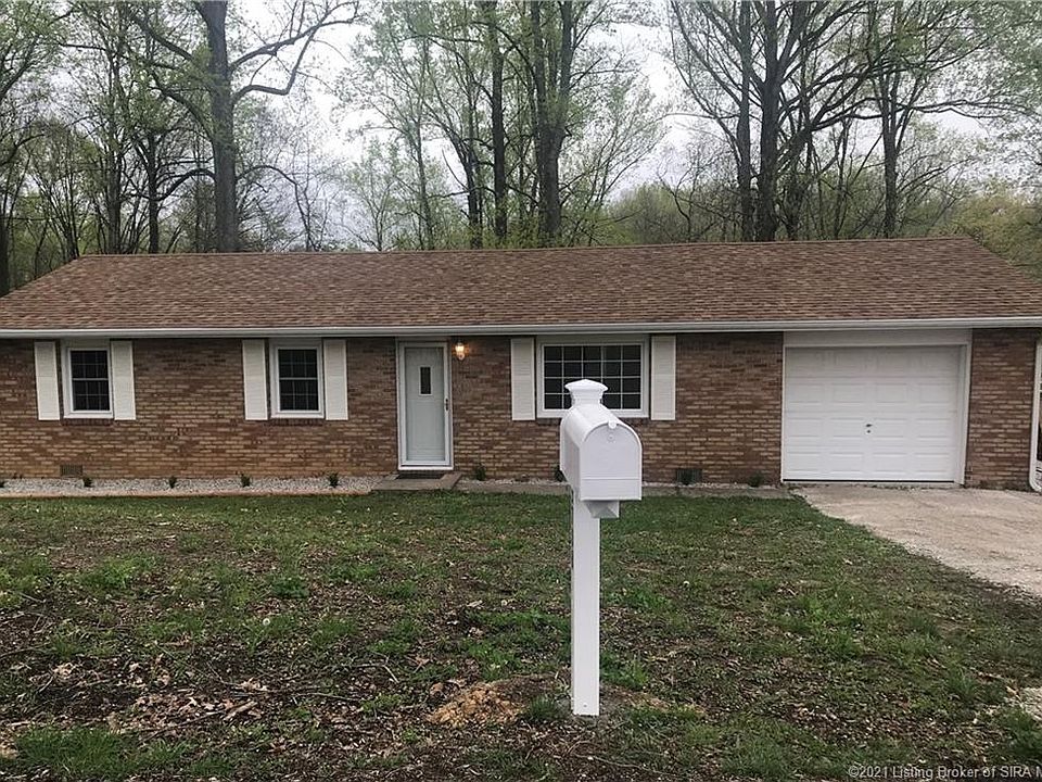 Sounds and sights of natural abound!! Enjoy the beautiful park like setting while you listen to the creek below as well as the other sounds of nature. This lovely home is move in ready with all new laminate and ceramic tile flooring; new interior paint throughout; new kitchen cabinets, new hardware, new sink, new faucet & new appliances; new heat pump a/c, ductwork, vents & thermostate; new entry doors; New professionally installed Unisheild double pane windows; newly shingled roof, new gutters, new shutters & new vinyl soffits; new overhead cabinets & new hardware in utility room; full bath with all new vanity, new sink, new tub/shower unit, new faucets, new towel racks & new unique triple mirrored medicine cabinet; all new solid wood interior trim; all new LED interior light fixtures, new light switches, plugs & covers; new 10'x7'9" side deck; New hardwired smoke detector; New water heater; 10 Ton of New #73 rock on driveway, plus extra parking; New landscaping; New mailbox and post; new hardware on doors; 6 panel interior door. Creek View from back yard and seasonal view from Kitchen window. Creek does not adjoin this property. This location is within 25 Miles of Jeffersonville and just over 16 miles to Madison.