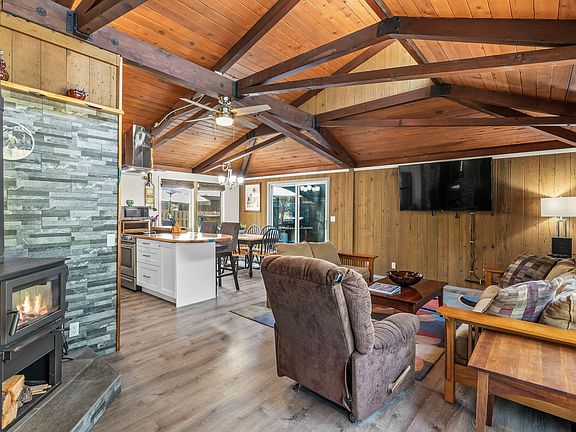 Fully remodeled 2 bedroom, 2 bath Sunriver vacation home. Excellent location near the main entrance, one block from the Sunriver mall and a short distance to the SHARC. The open floor plan features vaulted ceilings with exposed beams, a new woodstove and great natural light. The kitchen boasts new: cabinets, stainless appliances, tiled backsplash and stunning custom wood slab epoxy counters. The updated bathrooms feature beautiful tiled walk-in showers and tiled floors. Enjoy outdoor living on the back patio and deck complete with a new 6 person hot tub. Other updates include new furnace with air conditioning, all new windows and waterproof plank flooring. Home is being offered as a fully furnished vacation home, rental financial proforma available upon request.