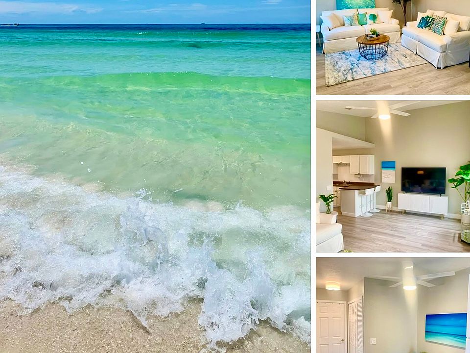 Location, Location, Location!! Just steps away from the beautiful white powder sands of Panama City Beach. This fully remodeled 2 bedroom, 1 bath has private yard for your fur baby or just to relax after your day at the beach. All new modern furnishings with top-of-the-line mattresses & bedding, fully equipped kitchen, Keurig coffee maker, 65 inch smart tv, beach towels, chairs & umbrella. Walking distance to restaurants, bars & shopping. Close to St. Andrews State Park. Did I mention that your only 300 steps away to one of the most beautiful beaches that the Emerald Coast has to offer!!
