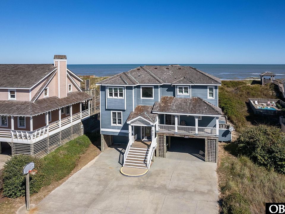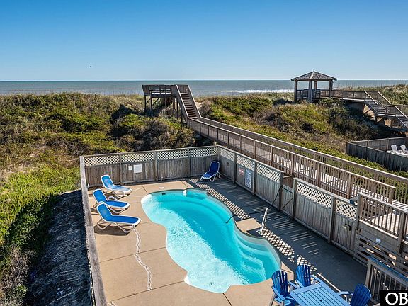 Oceanfront Elegance & Investment Prowess — Welcome to Costa Azul, a rare oceanfront opportunity in The Village at Nags Head — a premier coastal retreat where breathtaking views, protective ocean dunes and strong, proven rental income converge. Tucked behind a soaring, vegetated dune on a ~26,000 sq ft lot, this 8-bedroom home delivers privacy, serenity, and panoramic ocean vistas!