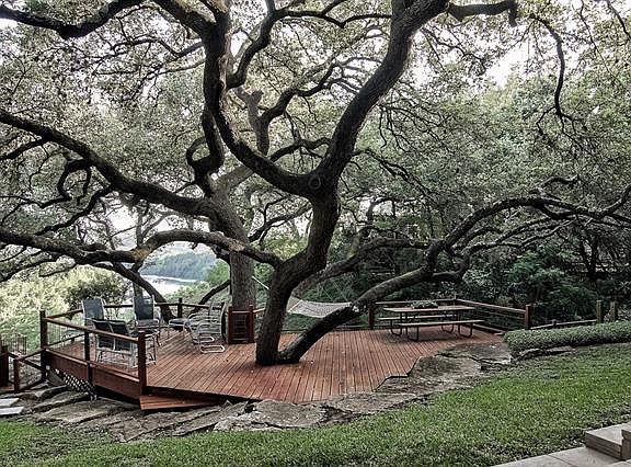 Copy/paste link for 3D tour: bit.ly/5709SamHouston3D. Come live the dream on Lake Austin in this beautiful waterfront home! Enjoy an amazing lake living experience in the quiet Courtyard community with miles of trails, picnic areas, park, tennis club, and your own private boat dock! The lush grounds with towering oak trees, gorgeous covered patio, and a fabulous deck that overlooks Lake Austin provide plenty of space for outdoor dining and entertaining. The spacious open floor plan captures the serene views through walls of windows. Grand master suite up with updated bath feels like a hideaway in the trees. The guest bedroom with full bath on main would make a great in-law suite. With four bedrooms, two spacious living rooms, two dining areas, and a renovated Chefs kitchen with huge island and stainless steel appliances, this home has plenty to offer! Located just minutes to downtown, Arboretum, Domain or Barton Creek Mall, this one-of-a-kind property is a perfect summer getaway!