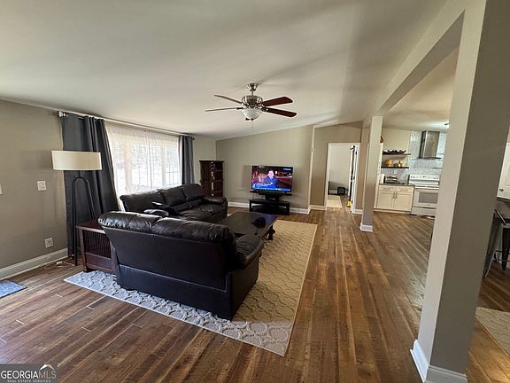 Nestled on over 6 acres of wooded privacy, this stunning 4-bedroom, 2-bathroom home offers the perfect retreat. Enjoy a fenced and gated entry, scenic nature trails, and expansive outdoor spaces, including two covered porches. The property also features a storage building with two parking spots, plus a generous gravel parking pad and driveway. Inside, high-end upgrades complement the beautifully designed interior. The island kitchen boasts a breakfast bar, while the master suite includes a garden tub, separate shower, and dual walk-in closets. With a spacious living room and a separate game room, there's plenty of space to relax and entertain. This home comes fully furnished, with the option to lease unfurnished upon request. No indoor pets. No smoking. Copyright Georgia MLS. All rights reserved. Information is deemed reliable but not guaranteed.