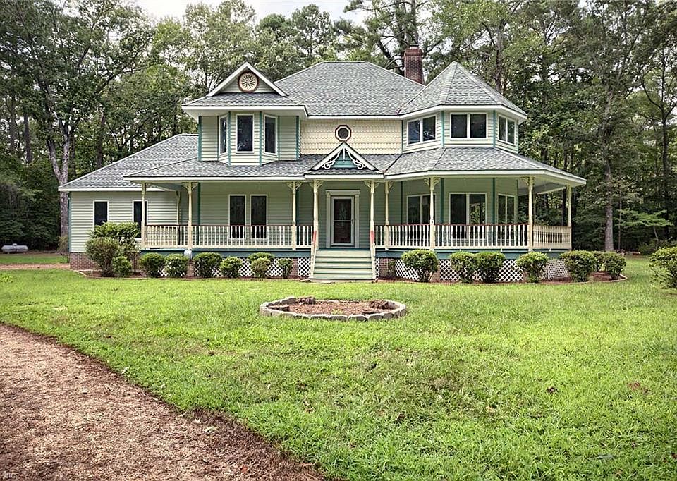 This picturesque Victorian on 8 private acres in Mathews is full of charm and natural beauty. The wraparound porch welcomes you inside, where sunlight fills the property through walls of windows that frame peaceful wooded views. Perfect for relaxing or entertaining, the home features a rear deck, bright living spaces, and timeless details throughout. A side-loading two-car garage and storage shed provide convenience, functionality and ample storage. The renovated primary bath offers a double sink vanity, walk-in shower, and freestanding soaking tub. Whether you’re enjoying your morning coffee on the porch, hosting gatherings, or simply soaking in the quiet beauty of the surrounding nature throughout the acreage, this property offers a rare blend of character, comfort, and privacy—just minutes from the heart of Mathews and Gloucester.