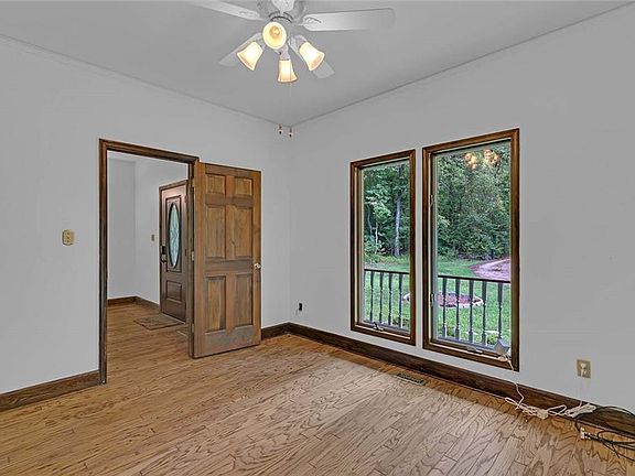 Peaceful wooded viewsBright living spacesTimeless detailsSunlight fills the propertyWraparound porchRear deckFreestanding soaking tub