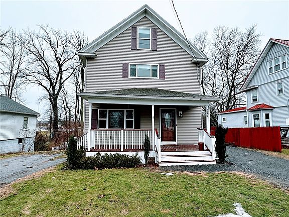 Fantastic 3+ bed Colonial with loads of charm in the heart of Webster School District! Inviting front porch and entry opens to a spacious well-lit living room. Updated kitchen has tasteful wooden cabinets with plenty of counterspace and a huge walk-in pantry complete with 1st floor laundry. Roomy dining area with classic oak pocket doors makes a great spot for entertaining guests. 2nd floor Primary bedroom with full bath offers extra privacy. Finished attic with two huge bonus rooms add lots of additional space and would make a great location for a home office, kids playrooms or additional future bedrooms. Full basement offers plenty of additional space for storage. Extra-deep backyard with storage shed and garden beds. Additional upgrades include newer vinyl Thermopane windows throughout, wi-fi thermostat, smart lights and video doorbell, '14 forced air furnace, '15 central air, and ‘20 new 200 amp electric service. Super-convenient locations is just minutes to restaurants, shopping, expressway, and Lake Ontario parks. Delayed negotiations until Monday 2/05 at 7pm.