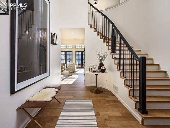 Welcome to this stunning home that has been beautifully remodeled with attention to every detail and designer touches throughout. This home is poised on .77 acres in the exclusive Broadmoor Resort Community, offering unparalleled privacy and Cheyenne Mountain views. Be greeted in the dramatic foyer with curved stairway. The sun filled living room features soaring ceilings and floor to ceiling accented fireplace. A Chef’s delight, the kitchen provides professional grade appliances, sprawling quartz island, walk-in pantry and casual dining. A Butler’s pantry leads to the formal dining room. Unwind in the family room boasting a cozy gas fireplace. The beautifully appointed primary suite features twin walk-in closets and luxurious bathroom with dual vanities, spa shower and soaking tub. French doors lead to the office – ideally situated to be a quite workspace. Step out to the expansive deck with pergola and take in the serenity of the foothill setting. Ascend one of two staircases to the loft that overlooks the family room. The upper level offers three bedrooms with ensuite bathrooms plus a fourth bedroom that can be used as an office, exercise room or art studio. The lower level opens to a walk-out family room and separate media/gaming room. A spacious secondary bedroom and full bathroom provide a comfortable space for hosting guests. In the gated BRC, you will enjoy nearly 20 miles of private hiking trails, acres of open space and forests, beautifully landscaped common areas, and unique wildlife. Conveniently located to The Broadmoor Hotel, downtown Colorado Springs, award winning Cheyenne Mountain Schools and dining. Surrounded by natural splendors and incredible amenities, your sanctuary awaits!