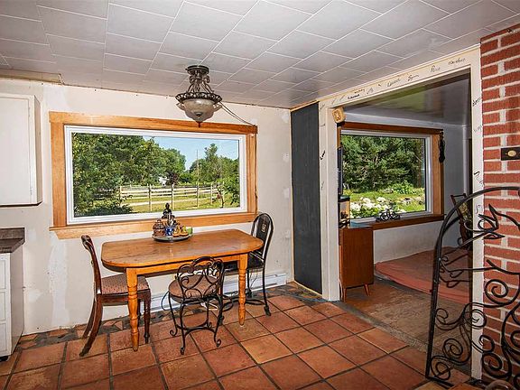 Unique hobby farm. This riverfront property holds lots of possibilities. Drive 5 min. to town amenities: supermarket, health clinic, hardware store while relaxing to the call of the loons and the many owls which inhabit this oasis. Over 11 acres of mixed forest trails which stretch to your 100% private riverfront campsite. Home has had many renovations while still maintaining its original charm and character. Spacious modern addition provides room for home business, or Air B&B rental. It has 3 spacious rooms, one of which could be used an apartment with half bath. You will find original softwood floors throughout the main residence as well as authentic, handmade Mexican clay tile in the kitchen dining area. Daytime area is sunny and bright with fabulous views of organic gardens and horse pastures. Included is one modern energy efficient, wood stove for cozy living in winter. On the first floor there is also a spacious mudroom/laundry, bright living room, master bedroom, full bath and office. Second floor has bright landing with four bedrooms. Recently operated as a farm, micro-dairy and licensed, artisanal goat cheese facility, there are five barns, kennels, huge 30x50 stables with electricity, running water, tack room, fenced chicken coop, and a new, engineered commercial septic system. If you are looking for sustainable living this property has it all!