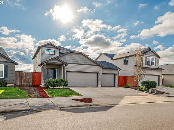 Welcome home! Experience the allure of Meadow View Park in West Eugene with this beautiful move in ready home offering a spacious and inviting living and entertainment area featuring a cozy gas fireplace and ample natural light pouring in through numerous windows. The kitchen is a culinary delight with stunning granite countertops, painted maple cabinets, stainless steel appliances, and LVP flooring. The spacious primary suite has a large walk in closet & dual sinks in the primary bath. The Beautiful backyard views are perfect for summer nights on the patio watching the sunset & enjoying your hot tub! With the convenience of a 3 car garage and the added bonus of no neighbors behind the home, this property offers a perfect blend of comfort, style, and privacy for your ideal lifestyle. Spacious backyard with fully fenced yard. Plenty of room for furry friends to roam.