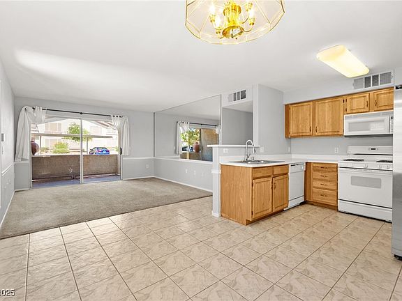 Welcome to this charming 2-bedroom, 2 full bath condo located on the ground floor in a well maintained gated community. This move-in ready unit features a functional open layout with a spacious living and dining area, fresh two-tone paint, and updated fixtures throughout. The kitchen offers ample cabinet space, stainless steel refrigerator, gas range, and a breakfast bar that opens to the living space. Both bedrooms feature ceiling fans and mirrored closet doors, with the primary bedroom offering direct access to the Primary bath. Enjoy your own private covered patio just off the living room. Community amenities include a sparkling pool, spa, fitness center, and mature landscaping throughout. Conveniently located near shopping, dining, and freeway access, this condo is ideal for first-time buyers, investors, or those looking to downsize. Don’t miss the opportunity to own this low-maintenance gem in a prime Las Vegas location!