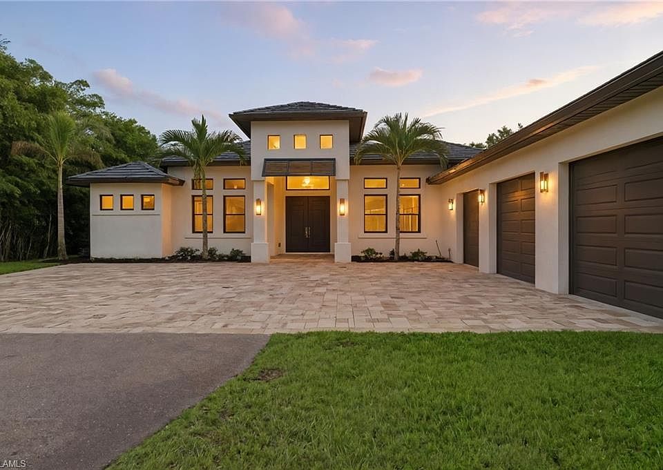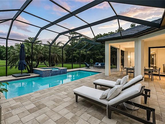 Welcome to the perfect blend of space, privacy, and modern luxury at 5710 Spanish Oaks Boulevard, an exceptional 2019-built home in the highly sought-after Oakes Estates, one of North Naples’ premier acreage communities celebrated for its peaceful setting and absence of HOA restrictions. Set on 1.59 fully fenced acres, this property offers the rare combination of contemporary construction, refined finishes, and flexible outdoor space. A private electronic gate and long drive lead to a home that exudes quiet sophistication and comfort. Inside, you’ll find four bedrooms plus a den, three full baths, and over 3,000 square feet of open, light-filled living space with marble floors, 12–14-foot tray ceilings, and elegant architectural details throughout. The kitchen features high-end Bosch appliances and flows seamlessly into the great room and lanai, creating an ideal environment for entertaining or everyday living. Step outside to a resort-style saltwater pool and spa, complemented by a built-in outdoor kitchen and screened lanai designed for effortless Florida living. Beyond, the cleared rear lot offers endless potential, a guest house, tennis or pickleball court, or custom putting green could easily complete your private retreat. Additional highlights include a fully air-conditioned three-car garage, whole-home reverse osmosis system, and custom built-in closets. Ideally located just 10 minutes from Naples’ world-class beaches, with easy access to I-75 and bikeable or walkable proximity to shopping and dining, this residence captures the very best of the Naples luxury lifestyle—offering space, freedom, and sophistication in one of the city’s most coveted neighborhoods.