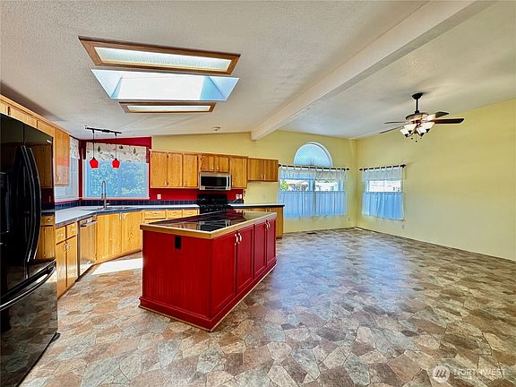 Welcome to Kellogg Village, a charming neighborhood in the heart of Marysville. This expansive triple-wide home offers a fantastic opportunity to bring your vision to life—a blank slate full of potential! Step into a spacious living, dining, and kitchen area filled with natural light, vaulted ceilings, and plenty of room to make it your own. With four generously sized bedrooms and two bathrooms—including one with accessibility features—this home is designed for comfort and flexibility. Outside, enjoy a cozy deck, a dedicated workshop area, and an additional shed for extra storage. Whether you're looking to invest, customize, or create your ideal home, this property is full of possibilities. Don't miss your chance to make it yours!