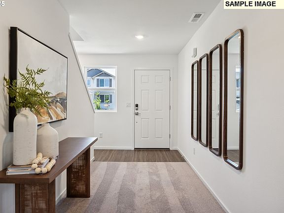 This new construction home is located in Meadowview, a serene community surrounded by protected wetlands and within walking distance of local parks and trails, with convenient access to Fern Ridge Lake, grocery stores, schools, and restaurants. The Damian plan features a modern two-story layout with an open-concept main level that connects the kitchen, dining, and living areas for effortless entertaining. Upstairs, a versatile loft sits at the center of four bedrooms, including a spacious primary suite with an en-suite bath and walk-in closet. Interior highlights include quartz countertops, shaker-style cabinets, and LVP flooring in the kitchen and bathrooms, along with front yard landscaping. This home also includes central air conditioning, a refrigerator, washer and dryer, and blinds—all at no extra cost! Homesite #79. Expected completion: TBD. Rendering is artist conception only. Photos are of a similar home, features and finishes will vary.