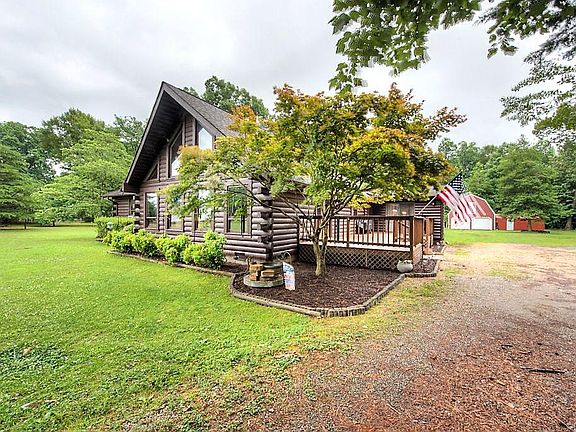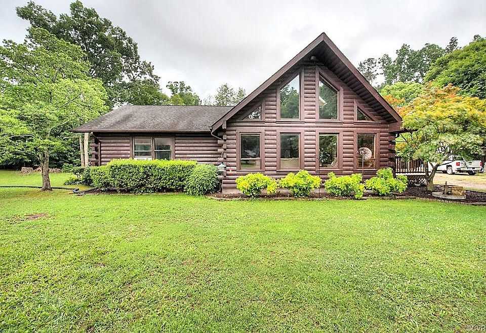 This beautiful 3 bedroom, 3 bathroom log cabin is situated on 4 acres. The home features a vaulted great room with a stone fireplace, built in bookshelf and wet bar. The eat-in kitchen has corian counter tops and a wood burning fireplace. The formal dining room kitchen, master bedroom and great room have hardwood flooring. The large master bedroom has double closets, the master bath room comes with double vanity, clawfoot tub and separate shower. A geothermal heating system will keep your electric bill low. The second bedroom has a private bathroom and leads to a sunroom. The barn style 2 car garage has a loft for storage and an attached room for more storage or a workshop. There are 2 wells on the property. This home is located just minutes from Ft. Lee, I-95, I-295. The Tractor bush hog Ferguson T020, log split chain saw ( only 9 month old), airless paint compressor and both wall mounted TV's will convey.