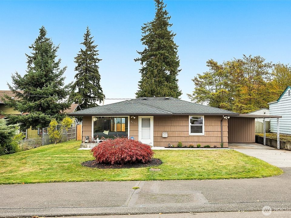 Charming rambler with zero access stairs in front or rear of the home offering easy, single-level living. This 2 bed, 1.75 bath home features a large living room with picture window overlooks the peaceful front yard. The kitchen has new countertops, single basin sink, new refrigerator in a fresh layout and opens to a covered patio—perfect for grilling, pets, or entertaining. The primary bedroom includes a walk-in closet, 3/4 bath and even backyard access. The guest bath features a jetted walk-in tub for added comfort and accessibility. Utility room has washer and dryer plus extra storage. Also, this home has a fully fenced backyard, carport, driveway & off street parking and is all located near I-5, Paine Field, Boeing, schools, & shopping.