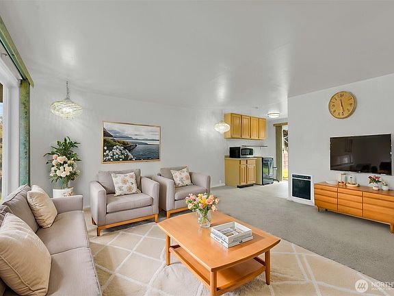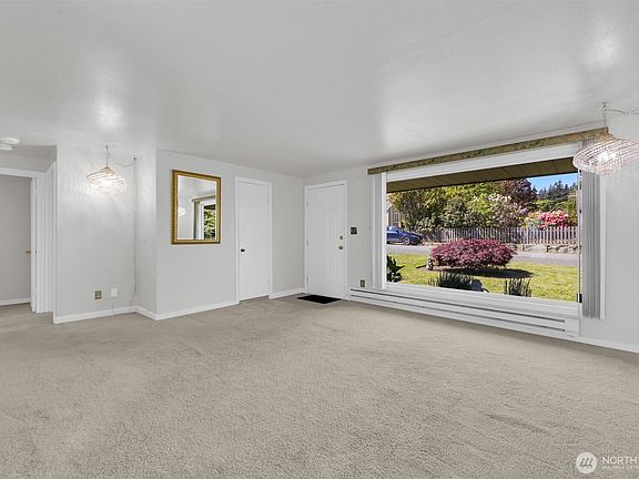 This rambler with no stairs is located on a large lot and features two bedrooms, 1 3/4 bathrooms. The large living room with picture window overlooks peaceful front yard. Kitchen with slider exits to a covered patio with mountain views perfect for BBQing. Primary bedroom with walk in closet and access to backyard. Main bathroom has a jetted walk-in tub convenient for all to access. The mudroom has lots of room for storage. It also has a fully fenced backyard, a carport and plenty of room to park both in the front and the back. The alley access, which could allow you to potentially build additional structures (buyer to verify). The location of this home is very convenient to I-5, Paine Field, Boeing, and various amenities.