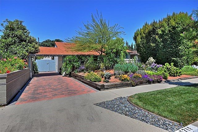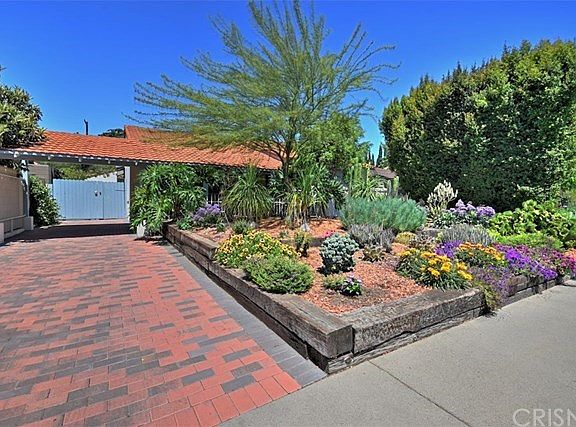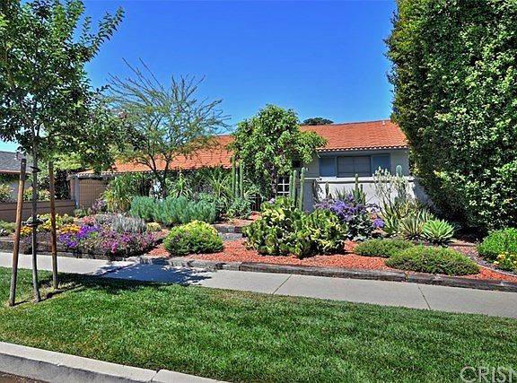 Located in a wonderful Sherman Oaks neighborhood, this inviting home offers a peaceful and convenient lifestyle. Set on a spacious lot with extensive drought-resistant landscaping and a secluded backyard, the home has been lovingly maintained. A lush front yard that is like a botanical garden creates an instant appeal for this home, which offers a charming porte-cochère entry and a large front porch, perfect for greeting friends. The living room/dining room combination has numerous large windows and a gorgeous white brick fireplace with elegant tile work. Dual window boxes bring abundant sunlight into the kitchen, which has ample counter space, custom cabinets and a breakfast nook. The nearby third bedroom has been transformed into a family room that is certain to be a favorite, as it has a distinctive curved fireplace and a wall of glass doors that connect to the backyard. The spacious master has an oversized walk-in closet and en suite bathroom with a walk-in shower; the secondary bedroom is also generous in size. Meticulously refined, the backyard has a detached art studio/gym/office, a work room, two large pergolas, a vegetable garden, and a raised flower garden. Set in the Kester Avenue award-winning school district and nearby great shops, restaurants, parks, and freeways, this home is a great opportunity