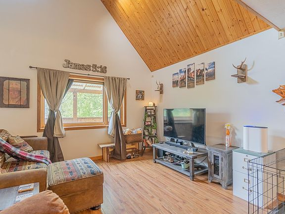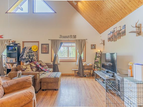 Adorable home for sale in Salcha, Alaska! This charming 1 bed 1.5 bathroom home sits on an extensive 5.7 acres with access to the Tanana River via a trail that passes through state owned land. What would you do with all that acreage?? Looks may be deceiving from the outside as this home is spacious and provides a lot of room for whatever your heart desires. On ground level you'll find your large garage, laundry room and boiler room! On the main level there is anopen concept kitchen and living area. With vaulted ceilings and big windows, you can't help but fall in love with this part of the home. Keep cozy in the winter months with a secondary heat source - the wood stove! The kitchen and living area but have access to decks on the front and back of the home where you'll often find yourself taking in the peacefulness of your almost 6 acres. The main bathroom that holds a double sink vanity, walk in shower and relaxing soaking tub is also located on the main level. Upstairs is an entire level dedicated to the owners suite. The vaulted ceilings give the bedroom an elevated, unique vibe where you'll be excited to escape to every night. Living in Salcha offers close proximity to their local schools, Eielson Air Force Base, outdoor recreational areas, Arctic Harvest Distillery, and the opportunity for more space and privacy. If this sounds like your cup of tea, schedule a showing!
