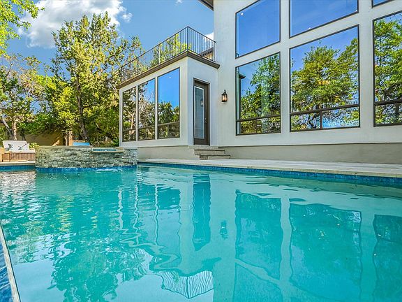Situated on 1.55 +/- acres, this Lake Travis estate exudes privacy for your very own escape on the lake. The 4-bed, 4-bath home features a home office, chef’s kitchen with Viking appliances, a Bose surround system, gated entry, and even a FAA licensed Helipad. Floor-to-ceiling windows frame hill country and lake views, while the kitchen includes custom cabinetry, gas range, dual ovens, and a large walk-in pantry. The main-level suite boasts pool views, tall ceilings, custom California Closets, soaking tub, walk-in shower with rainfall head, and outdoor access. Upstairs offers a spacious flex area, 3 bedrooms and 2.5 baths, and two spacious patios. Outside, enjoy a modern pool and spa, built-in grill, covered and uncovered seating, a bocce ball court, and multiple entertaining areas. There is 250 +/- sqft of outdoor storage for all your pool and lawn equipment. At the water’s edge, relax by the picnic tables or at your private boat dock in a quiet cove on Lake Travis.