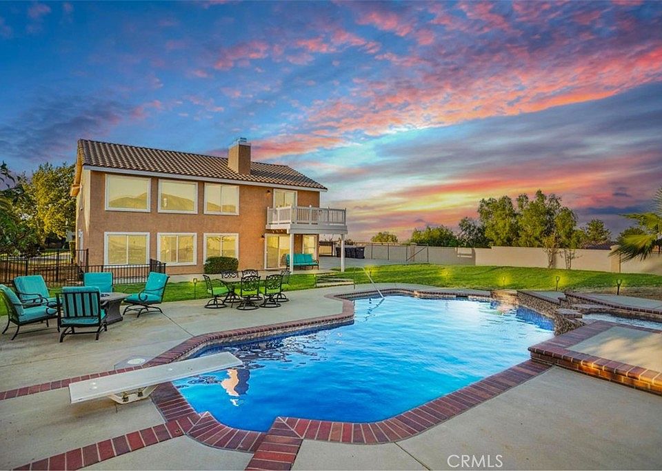 Amazing Gated Belle Vista View Home with Views, Pool & Spa Welcome to this exceptional 5-bedroom plus office residence, fully renovated from top to bottom, nestled at the end of a private cul-de-sac on one of the largest lots in Bela Vista—over 20,000 sq. ft.! Featuring a massive gated RV access, this property is designed for both luxury and function. Inside, the home impresses with travertine flooring in the main living areas and brand-new upgraded carpet in all bedrooms. The remodeled chef's kitchen offers granite countertops, stone backsplash, stainless steel appliances, self-closing drawers, a stainless farm sink, walk-in pantry, and recessed LED lighting. The main level includes a spacious family room with -stone veneer, formal living room, handicap-accessible bath with oversized shower, a large bedroom with two built-in Murphy beds, and a private office with French doors and custom shelving. Upstairs, the primary suite is a true retreat, complete with dual-sided fireplace, private lounge area, and a stunning rear balcony overlooking the sparkling pool and spa. The remodeled bath boasts a custom glass-enclosed shower, soaking tub, and elegant finishes. A second front balcony showcases panoramic views of the Antelope Valley. Recent upgrades add tremendous value: tankless water heater, two new HVAC systems, smart sprinkler timers, water softener, new PebbleTec pool surface, new pool heater/filter with phone app control and new variable color LED lights app controlled, two new smart garage doors, and a 25-year roof underlayment. This one-of-a-kind home combines luxury, functionality, and modern smart-home conveniences—offered at a price designed to sell.