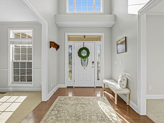 Step into the impressive two-story foyer that flows into a dramatic great room with a floor-to-ceiling stone fireplace, creating the perfect centerpiece for gatherings. The first floor also features a private bedroom with full bath, a true home office, and a formal dining room—ideal for both everyday living and entertaining.