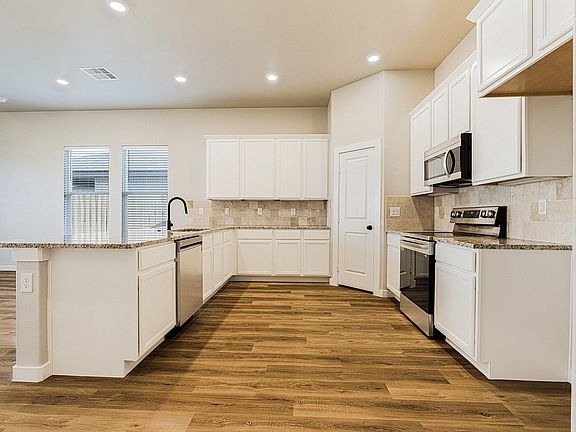 This 1,760 square foot Timeless Transitional affordable new home welcomes you with an elegant front tower, a covered front porch, and brick and cedar columns and accents. This 3 bedroom, 2 bathroom open concept new home offers homeowners a large kitchen peninsula, a walk-in pantry, and three storage closets. This quality new home is complete with a two-car garage, a large master suite with a walk-in closet connected to the utility room, and a covered back porch. *Painted brick available as an upgrade to our Sienna floor plan.