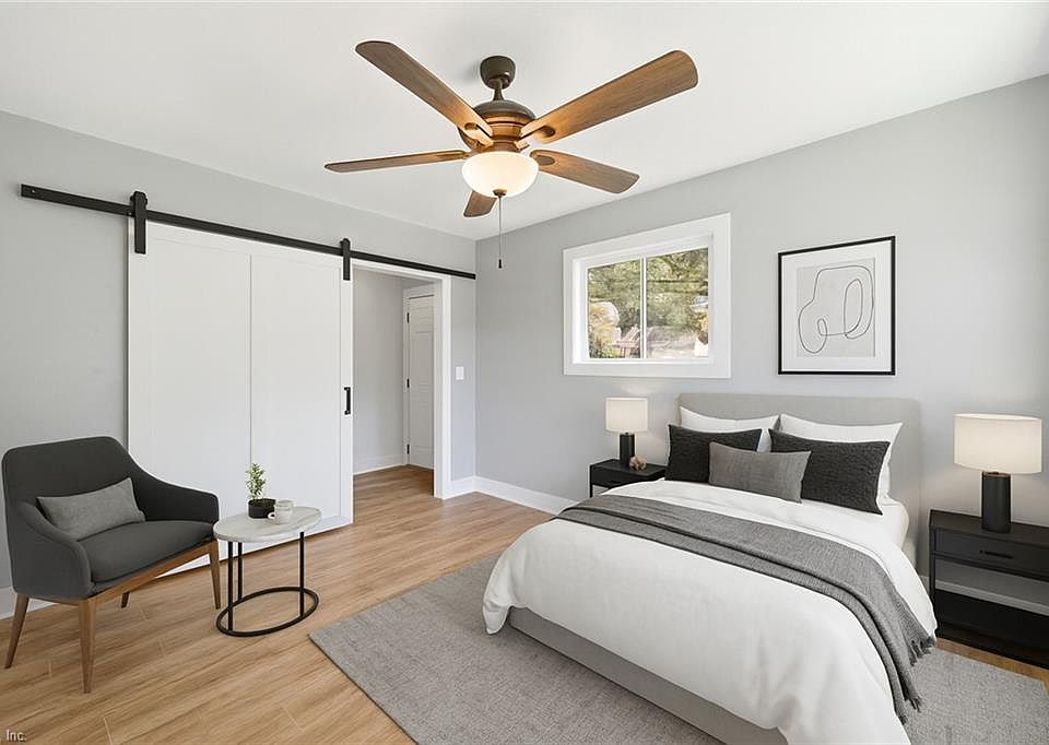Completely Renovated Brick Ranch Conveniently located near I-264/I-64 and Norfolk Premium Outlets. Renovations include New Roof, HVAC system, Hot Water Heater and all New Windows along with New Luxury Vinyl Plank Flooring throughout, Completely Updated Kitchen with Custom Cabinetry and Hardware and Brand New Countertops. All New Appliances including Refrigerator, Oven, Microwave, Dishwasher, Sink, and Faucets. Bathroom Updates include brand New Tub/Shower Faucets, Vanity, Custom Tiling, Fixtures & new Toilet. Additional Improvements include All New LED Light Fixtures & Fans, Fresh Drywall with Knockdown Texture, Completely New Paint throughout, Brand New Washer and Dryer, and a Finished off Completely Drywalled Garage w/ New Door Tracks. All New Major Systems, Appliances, and Interior finishes are BRAND NEW. Exterior offers a Spacious Front Yard and a Large Backyard! This Beautiful 1 Story Ranch has it all including access to the community Lake and Pier!