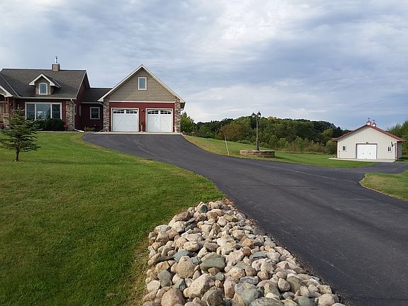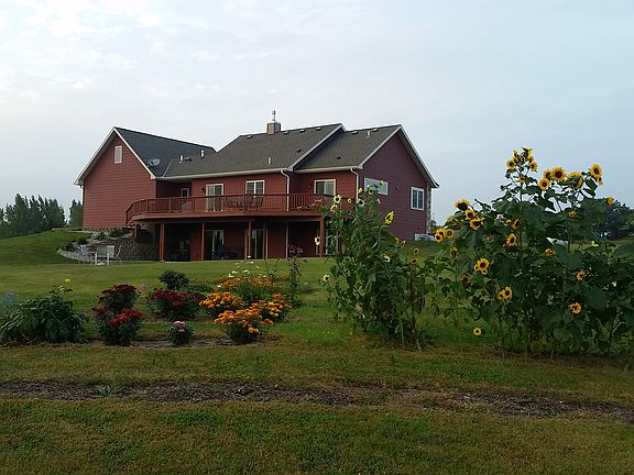 Custom 4BR 3BA home with bonus room above garage on nearly 4 acres 5 mi NW of Alex. Dream kitchen w/Wolf range, double wall ovens, soft- close cabinets with pull outs, pantry and farm style sink. Exotic hardwood floors on main level. See=thru fire place in center of open floor plan with vaulted ceilings. ML owner's suite walk-out, with deep jetted tub, ceiling fan and walk-in closet. laundry on both levels. LL in-floor heat with 2 walk-outs and 3 bedrooms. Lots of windows and natural lighting throughout. Large Trex maintenance free deck. 2-stall heated attached garage. Large pole shed with concrete floor and in-floor heat ready.