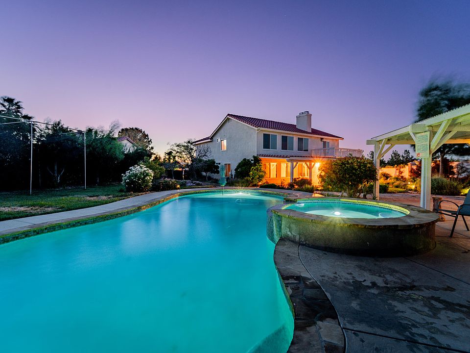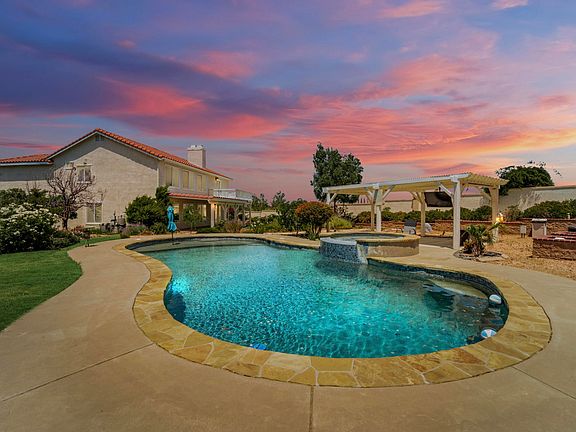 ***VIEWS***VIEWS***VIEWS*** GATED***RV ACCESS***POOL/SPA*** home.Located in the HIGHLY sought after BELLE VISTA COMMUNITY, in WEST PALMDALE, and at the end of a quiet cul-de-sac this property features 4 bedrooms/3 bath with a 5th bedroom added. Get the home that has it all before summer!! Upon entry you are greeted with a lovely front patio, custom front doors that are one of a kind, and a spacious foyer with vaulted ceilings, and big windows to allow for tons of natural light. There is an oversized bedroom with a ceiling fan and bathroom on the first floor. Formal living room and dining room are very spacious with large windows, and recessed lighting. The kitchen is upgraded with granite countertops, stainless steel appliances, and custom backsplash. Family room boasts a gas fireplace and patio welcoming you to your entertainers backyard. As you make your way upstairs, you will find an elegant spiral staircase leading you the the 4 bedrooms. Main bedroom has French doors, dual sided fireplace, ceiling fan, with a patio to observe the panoramic views of the entire Northern Los Angeles County. Main bedroom bathroom has dual sinks, dual closets, custom shower, and private tub, for a perfect soak after a long day. All bedrooms are oversized with plenty of storage. As you enter the backyard, you are immediately in YOUR OWN OASIS. There is a large covered patio, and a BRAND NEW SMART POOL/SPA that can easily be controlled from your phone. No more figuring out lighting and heating, you can do everything from your couch!! Ready to have the best party? There is also a luxurious pergola, outdoor television, and already cemented for your entertaining wants. Lush landscaping and block walls surround this gem. Turn key ready for the next owner to live in, so start packing and make this DREAM HOME YOURS TODAY!!!
