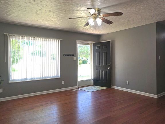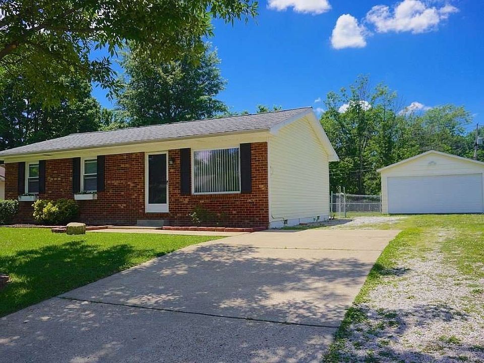 New listing on Northside! Attractive one level with 2 car garage. Nice fenced yard and open layout are just a few amenities this home offers. Featuring 3 bedrooms, laminate flooring, and new carpet. Nice openness and natural light. Large living room with laminate flooring is open to dining area and kitchen. Kitchen offers white cabinets with black appliances. Refrigerator, electric range, disposal, and new dishwasher are all included. Seller is also including a 1 year 2-10 home warranty at closing. Nice laundry room is located off of the kitchen and has cabinets above for storage. You are sure to enjoy the view from the window in kitchen and patio door from dining area for the backyard backs up to Stringtown baseball field. Yard is fenced and showcases: large patio, shed, and an area for gardening which has already been established. There is also added parking to the driveway for additional parking. Low taxes & immediate possession. Nicely landscaped.
