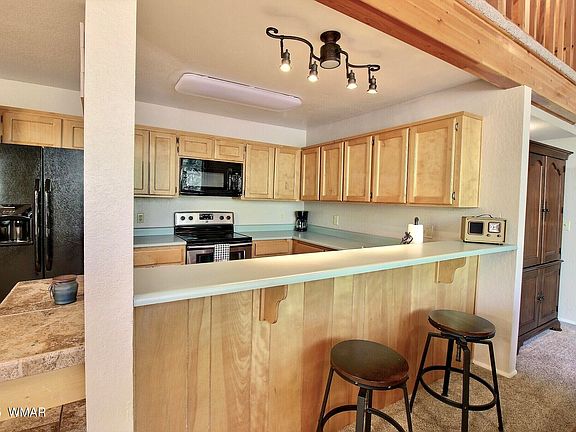 The garage has plenty of storage for your summer and winter toys. The large ... ... exterior deck offers space to barbeque and dine while enjoying the seasons. This highly sought-after end-unit provides added privacy and abundant natural light. Offered completely turn-key, it's ready for you to enjoy all of Pinetop's four seasons right away!