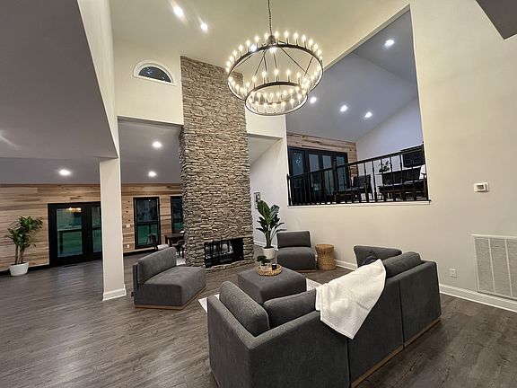 Must-see entertainer’s dream in Bellevue! Just minutes from shops, dining, and parks, this reimagined residence features a stunning 20-ft tall wrap-around stone fireplace, a spacious 50+ sq ft kitchen island, and a lavish master bath with a walk-through shower, oversized soaking tub, and a 240+ sq ft custom walk-in closet. The main level also includes a large office area, dining room, breakfast nook, and walk-in pantry. On the middle level, a cozy bar and lounge with its own fireplace overlooks it all, enhanced by huge French doors to the upper deck and a spacious laundry room. The top floor offers a second master suite and two bedrooms—one with a loft/study—each with private baths. Enjoy 4 fireplaces, 2 master bedrooms, 3 walk-in closets, new HVACs, roof, and water heater. Move-in ready. Make it yours!