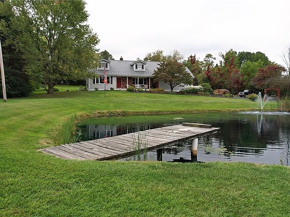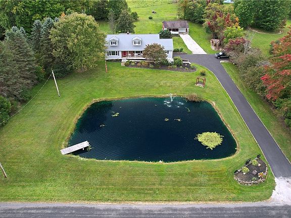 Looking for a country estate - Here it is. This 4 bedroom cape cod home offers it all. The kitchen has ample solid wood cabinetry complete with all appliancres. There's a formal dining room in addition to the eat in room in the kitchen. The living room features hardwood floors and a woodburner with a large picture window looking over the lake. There are 2 bedrooms on the main floor and 2 more very large bedrooms on the second floor. There's a full unfinished basement. The house is heated and cooled with the high efficiency heat pump and features a whole house Generac generator. There is 2 car attached garage and a 24x32 workshop. The metal house roof was installed in 2018. The deck has been recently stained, the canopy stays as well as the solar lighting. In addition to all this there your private lake full of fish.