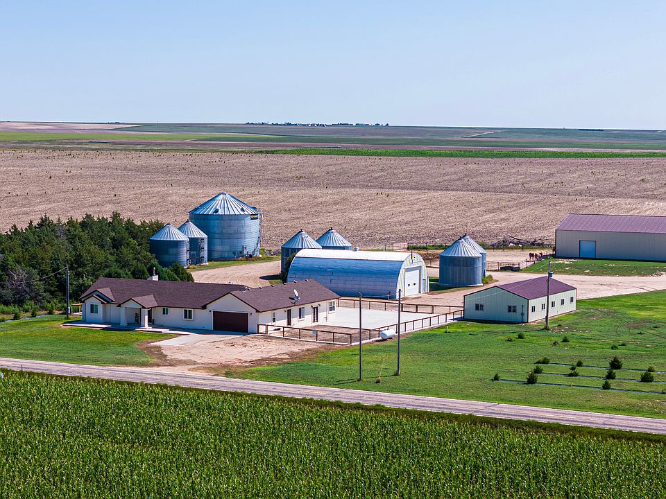 The Jones Farm offers 160± acres with a 4,620 sq ft custom home, guest house, multiple outbuildings, and 7 grain bins. Located 17 mi N of Otis and 20 mi SE of Sterling, CO, this turnkey farm features top-tier improvements, open farmland, and a private, treed homesite. Ideal for farming, livestock, or a rural family headquarters in Colorado's productive Eastern Plains.Covering 160± acres, The Jones Farm offers a balance of production, privacy, and rural lifestyle in a scenic country setting. The homesite is thoughtfully positioned amid mature tree rows on the north and south, offering protection from prevailing winds and enhancing the sense of privacy and seclusion. The land itself is gently rolling and highly functional, suitable for continued farming, grazing, and rural living. A large, fenced concrete patio and yard area surround the main residence, creating an ideal space for recreation, entertaining, or pets. With plenty of room to grow and expand, the land serves as a well-rounded base for a wide range of agricultural pursuits. The primary residence is a well-designed, custom-built, ranch styled home constructed in 2015, offering 4,620 square feet of finished living space across two levels. The main floor has an open-concept layout with hardwood flooring throughout, highlighted by a spacious country kitchen complete with granite countertops, white cabinetry, and a large center island. This chef's kitchen flows seamlessly into the dining and living areas, making it ideal for hosting family and friends. The master suite is located on the main level and features a luxurious five-piece bath, including a soaking tub, dual vanities, and an oversized walk-in tile shower. An additional bedroom and full bathroom are also found on the main floor. Downstairs, the finished basement includes three large bedrooms and a full bath, along with a sizable open recreation room that can serve as a second living area, home gym, game room, or entertainment space. In addition to the main home, a nearly 1,000 square foot guest house provides a private and self-contained living space-perfect for extended family, guests, or hired help. It includes a living room, full kitchen, bedroom, walk-in closet, and a 3/4 bath, all finished in a clean and comfortable style. The property is supported by reliable utilities, including propane heating, private well water, and a septic system. The Jones Farm is an established agricultural operation with the infrastructure in place for both farming and equipment storage. Farm improvements include a 50 x 100 farm implement building, a 40 x 60 Quonset building, and a 30 x 60 shop, providing substantial room for machinery, tools, repairs, and indoor storage. The seven on-site grain bins support grain handling and storage, helping facilitate a more self-sufficient operation with reduced hauling needs during harvest. The land is currently utilized for production and offers the flexibility for row crop farming, rotational grazing, or feedlot use depending on operational needs. Whether you're a seasoned producer looking to expand, a multigenerational family searching for a headquarters, or someone pursuing a turnkey rural lifestyle with income-producing potential, The Jones Farm checks all the boxes. With modern infrastructure, quality improvements, and a high-functioning layout, this property represents a rare opportunity to own a well-balanced and move-in-ready farmstead. The Jones Farm is ideally situated approximately 17 miles north of Otis, Colorado, and 20 miles southeast of Sterling, Colorado, placing it in the heart of Colorado's Eastern Plains-an area known for its strong agricultural heritage, open skies, and wide-ranging productivity. The region is characterized by a mix of dryland and irrigated farms, native grass pasture, and family-run operations that support both row crops and livestock. With easy access to nearby highways and agricultural services in Sterling, this location strikes a rare balance between rural seclusion and logistical convenience. The surrounding area is well-regarded for its friendly communities, and dependable growing conditions.