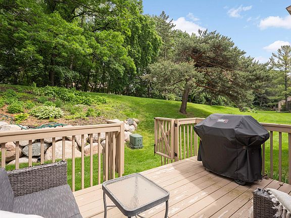 Stunning, light-filled, and fully remodeled 3BR, 3BA move-in ready townhouse tucked into one of Edina’s most serene and private communities. A charming bridge over Nine Mile Creek and beautifully landscaped grounds welcome you home. Inside, the sophisticated, airy décor shines with abundant natural light, fresh paint, new carpet runners, and gorgeous hardwood floors throughout. The vaulted living room features a striking new fireplace façade, updated lighting, enhanced molding, and sweeping private views through a wall of windows. The spectacular remodeled kitchen includes quartz countertops, a breakfast bar, subway tile & backsplash, stainless steel appliances, a wall of pantry cabinets, and an adjacent dining area all overlooking the deck and backyard. Upstairs, find three bedrooms and two baths, including a spacious primary suite with a stunning remodeled ¾ bath featuring heated floors and custom closets. The large lower level offers a half bath, versatile flex space for a family room, billiards, exercise, or playroom. Step outside to enjoy an exceptionally private deck framed by gardens, lush landscaping, and mature greenery—your own peaceful retreat. With elegant updates, timeless design, and a prime location near highway access, restaurants, coffee shops, and just 15 minutes from the airport or downtown—plus direct access to the Three Rivers biking and walking trail—this is the townhouse you’ve been waiting for.