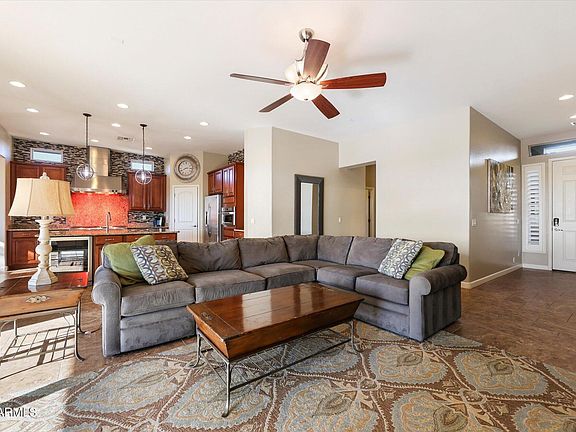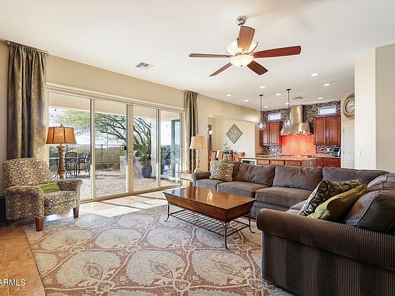 A rare home that shows better in person! Nestled on a 12,370 sq ft lot, this stunning Evolution Next Gen home offers a unique opportunity. The versatile floor plan includes a private two-bedroom casita w/its own entrance, kitchen, washer/dryer, & attached single-car garage w/overhead storage. Inside, the expansive open great room w/soaring ceilings connects to two guest rooms & a spacious Owner's Suite. The chef-inspired kitchen features a large island, gas cooking, dble ovens, & walk-in pantry. Outside, enjoy tranquil sunsets, ultimate privacy, & sweeping preserve views from the backyard. It is complete w/built-in gas BBQ, firepit, pavers, putting green, & bistro lights for effortless entertaining. Recent updates include exterior paint, water softener & water heater all new in 2024. Hanging storage in garage with overhead storage and epoxy flooring. Located in a secure, guard-gated community with parks, playgrounds, walking/biking trails, and breathtaking mountain views. Convenient to shopping, dining and freeways.