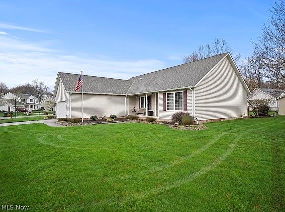 5713 Halwick Drive --- meticulously well-kept ranch located in Ravenna Township in the subdivision of Forest Ridge boosts 3 bedrooms and 2 full baths. Inviting front porch with stunning landscapes leads you into the foyer area with a coat closet and hardwood floors. Spacious living area with vaulted ceilings and a gas fireplace. Eat-in kitchen with granite countertops offer ample cabinet space + a pantry and all stainless steel appliances stay! The separate dinette area in addition to the eat-in kitchen is ideal for entertaining. The backyard features a newer deck with a gazebo + a partial fence & a storage shed., 2 bedrooms are located down the hall with a shared full updated bathroom with a quartz vanity. The owner's ensuite is very roomy with crown molding and the bathroom features dual sinks with granite countertops, a tiled shower and soaking tub and a walk-in closet. First floor laundry with storage cabinets, a utility sink with a granite countertop is right off of the 2-car attached garage. The garage has an epoxy sealed floor! The full sized basement has endless opportunity + a storage room and is even plumbed for an additional bathroom. The pool table stays! Ravenna Schools. Updates include: Roof/Gutter Guards (2017), HWT (2018), Bathroom Updates + Granite (2019). Neighborhood living, yet in close proximity to NeoMed, KSU, downtown Kent and Ravenna, shopping, restaurants and more! Don't let this opportunity pass you by!
