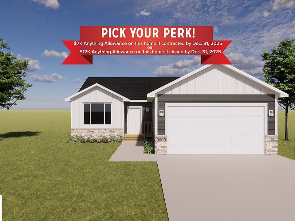 New home at McGee Farms Addition! Welcome to the Jameson, a charming, open-concept ranch home featuring 2 spacious bedrooms, 2 bathrooms, and all the comforts of single-level living. The heart of the home is a modern kitchen, complete with an inviting island, a pantry, and ample space for meal prep and entertaining. The kitchen flows seamlessly into the dining and living areas, making it perfect for gatherings and everyday living. The primary suite offers a private oasis with an ensuite bathroom and a generous walk-in closet, providing plenty of storage space. Convenience is key with main floor laundry, making household chores a breeze. Step outside to a covered deck, ideal for outdoor relaxation and entertaining. The attached 2-stall garage provides secure parking and additional storage space. This home combines style, comfort, and functionality, making it perfect for anyone looking for quality and ease in their living space. Don’t miss out on this fantastic opportunity! Price includes appliance allowance!