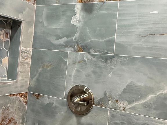 Step inside to find **high-end ceramic tile flooring with elegant white and gray accents** in every room, creating a bright and cohesive look. Both bathrooms are fully finished in **luxurious, top-quality ceramic tile** for a spa-like feel. Every room is freshly painted, featuring **ceiling fans and energy-efficient recessed LED lighting**.