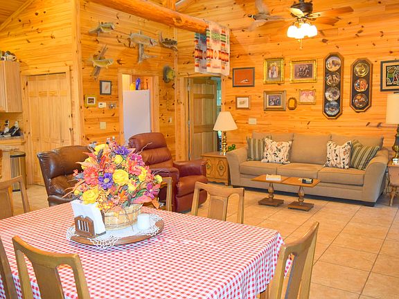 Ever dreamed of owning a log cabin on the water? Well here is your chance! This 2-bedroom, 2 bath home overlooks a 1/2 acre stocked pond and boast an open concept layout, tongue and groove cathedral ceiling, spacious kitchen with island and 2 master suites with large walk-in closets and double sinks. Enjoy your morning coffee from the back porch watching the ducks, fishing from the dock, working inside the 32x16 steel building, frying fish in the cook shed or have company stay over at the detached mother-in-law apartment. Other outside features include newly installed chain link fencing, detached 2 car garage, 3 wells (2'', 4'' and 8''), 2 septic tanks and an abundance of cypress trees providing shade and privacy. Home is located close to the Chattahoochee River boat ramp and a short drive
