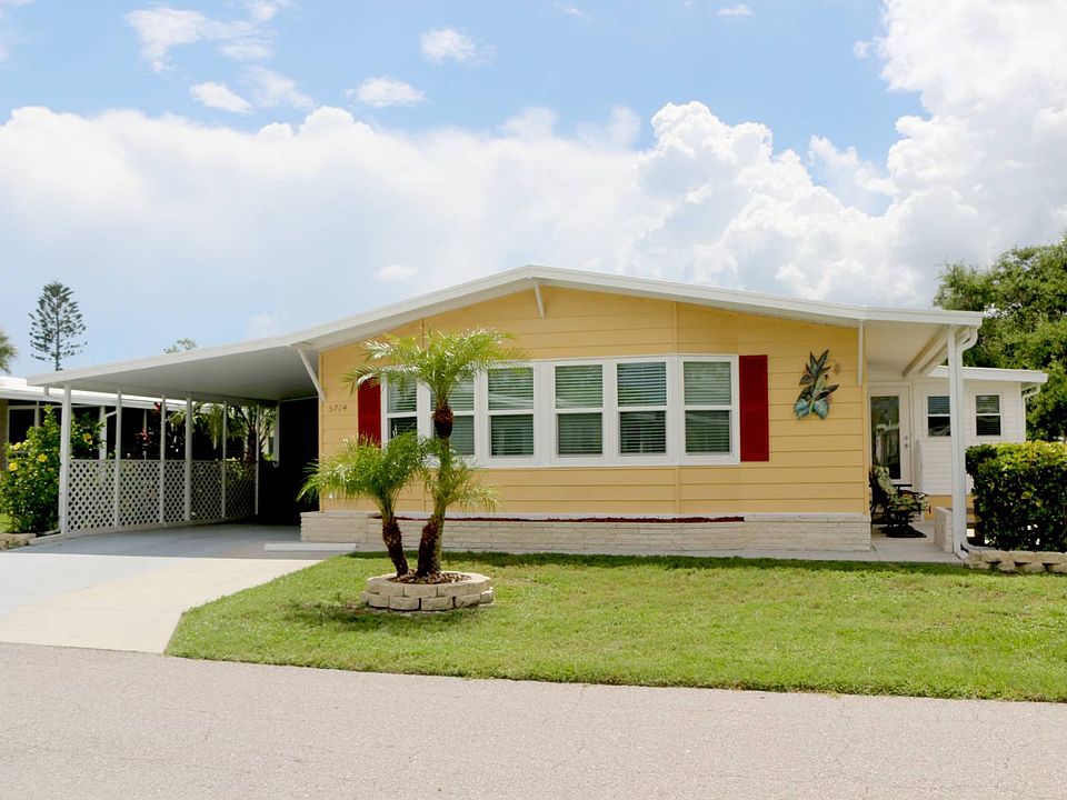 Look no further- this is the one! This pristine 2-bedroom 2-bath manufactured home has been updated and upgraded to a showcase home. Being offered fully furnished and turnkey, just pack your suitcase. The seller is also offering this as a rental opportunity. Located in a 55+ pet friendly resort style community. Immaculate and well maintained, this home offers all the luxuries of a regular home for a fraction of the cost, an affordable way to live in the highly sought-after town of Sarasota. The updated roof has a transferable warranty. The windows have been upgraded to vinyl hurricane resistant double pane windows. Just 9 miles to Sarasota's beaches and beach towns. This home features lots of outdoor living space for all your BBQ's and entertaining in addition to the spacious interior and year round lanai. A nice roomy lot lends to the spaciousness of this house. A large driveway easily accommodates vehicles, and an added golf cart pad for easy parking. The home is located in the community close to the clubhouse and main entrance. Monthly lot which is less expensive than an apartment rental for a 2-bedroom 2-bath is less than $1,800 per month which includes municipal water and sewer, curbside trash/recycling, lawn maintenance, property taxes, along with upscale resort style amenities and organized fun activities, such as day trips, cruises, lunches, dinners, pot lucks and lots of entertainment and parties. Local shopping, and restaurants are just minutes away in all directions. A short 9-mile drive takes you to the beautiful quartz sandy beaches of Siesta Key, or just a few more miles south to the famous Caspersen and Manasota beaches for shark tooth hunting. Fish, dip, kayak, or take a walk down the blue water gulf coast beaches. A never-ending supply of activities for all interests or quiet moments with a good book- your choices are endless. Disclaimer: All listing information is deemed reliable but not guaranteed and should be independently verified through personal inspection by appropriate professionals. We cannot guarantee or warrant the accuracy of this information, measurements or condition of this property. All measurements are approximate. The buyer assumes full responsibility for obtaining all current rates of lot rent, fees, and pass-on costs. The buyer is responsible for obtaining all rules, regulations, pet policies, etc., associated with the community, park, or mobile home.