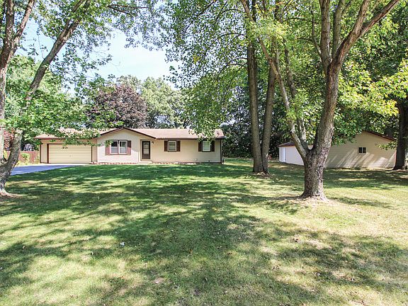 Sharp ranch on a double lot with a bonus pole barn! Home features include 3 bedrooms, 2 bath, additional finished square footage in the basement and a two-car garage. Sliders lead to a sunny patio overlooking farm fields for privacy and the adjoining wooded lot with a 24x32 pole barn with concrete floors and wiring for electric. Driveway was just resurfaced. It's all set in a quiet neighborhood with just one entrance for minimal traffic. PRICED TO SELL!