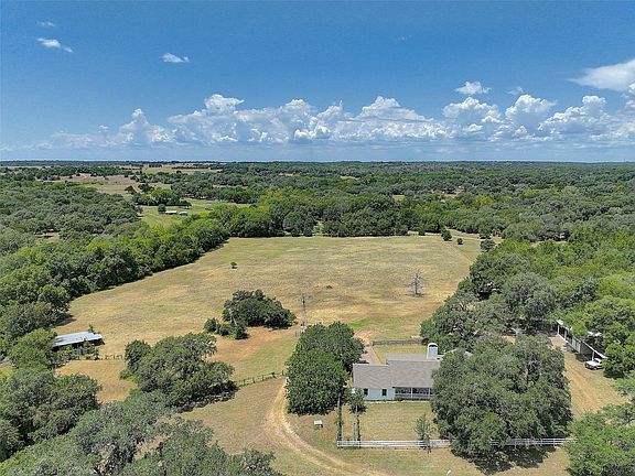Located in the Rutersville area of La Grange, a great ranch-style home/comfortably updated and well maintained. Massive Live Oaks, a live creek, fantastic sunset views, agricultural exempt 11.12 acres. A new composition roof, HVAC, water heater, Anderson windows, new flooring (Saltillo tile/luxury vinyl plank). The family area with a beamed-vaulted ceiling is centrally located with a wood-burning fireplace and huge 4-foot windows to bring the western views and sunsets indoors. The galley Kitchen is open and airy with conveying appliances and lots of light via charming original paned-windows, lots of storage space and conveniently located close to the utility area. With a half bathroom off of the Kitchen space which leads to the garage and back porch area there is more than enough room for the busy and growing expansion. All appliances convey.