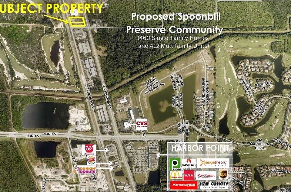 Cleared General Commercial Site with Nearby Utilities. Across Street from the Planned Spoonbill Preserve Community – 460 Single-Family Homes and 412 Multifamily Units, Three Clubhouses, a small Neighborhood Shopping Center and Amenity Facilities. Excellent Location to Service Our Fast-Growing North/Central County. Frontage on US1 and Access from Old Dixie Highway and 57 Street! Permitted Uses Include Fast Food, Medical, Office, or Contractor Trades Service!