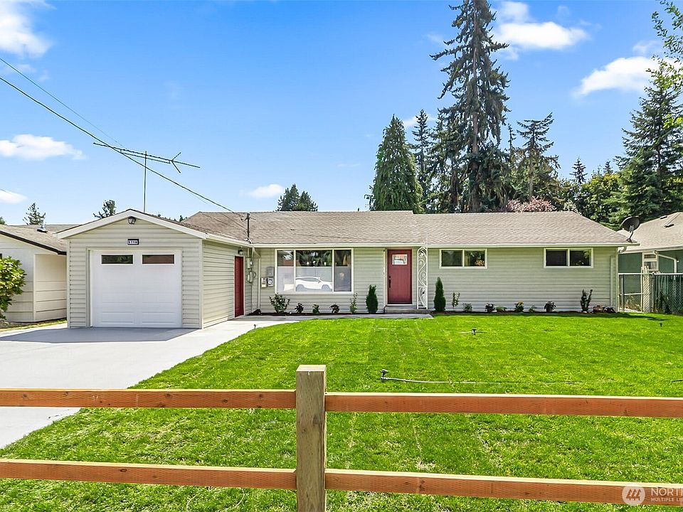 Beautifully Remodeled Rambler sitting on R7200 Zoned lot features transformational recent updates. This completely renovated single-story home offers effortless living with fresh modern finishes throughout. The stunning brand-new kitchen features new countertops, custom cabinetry, & stainless appliances that flow seamlessly into the open living space with a designated dining area. 3 large bedrooms+2.5 elegant bathrooms with 2 additional flex spaces with spiral staircase to a cozy den. Solar panels to help lower utility costs. A/C. Front yard adds charm, and a storage shed in backyard is a plus, Great location close to I5, Shopping, Restaurants. No HOA. Move in Ready, Sold as is.